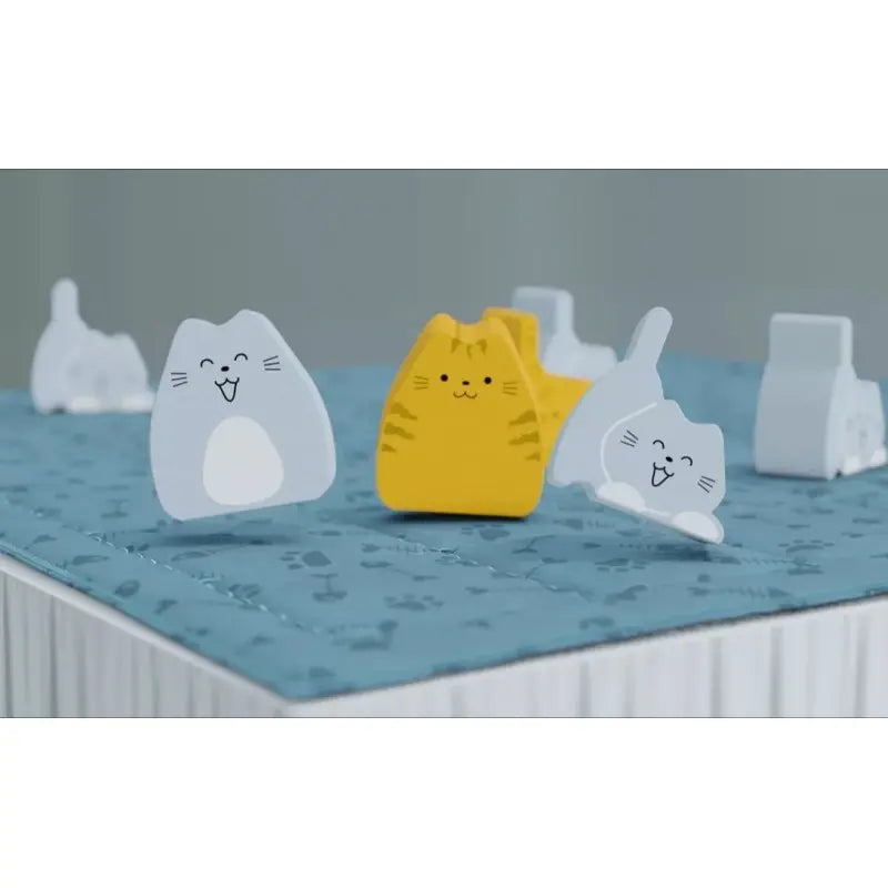 - Apresenta um tabuleiro acolchoado em tecido que se estende sobre a parte de trás da caixa, completando a superfície de jogo em forma de cama em miniatura. 8 gatinhos e gatos de madeira por jogador – 32 adoráveis peças de gato no total!