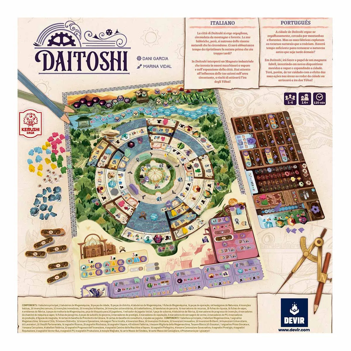Em Daitoshi, no teu turno, podes produzir ou mover o teu magnata para um novo distrito onde poderás enviar os teus trabalhadores para trabalharem, explorar hexágonos de floresta ou rio para satisfazer a tua incessante necessidade de vapor e realizar uma ação para expandires a tua influência e demonstrares a tua grandiosidade na cidade.