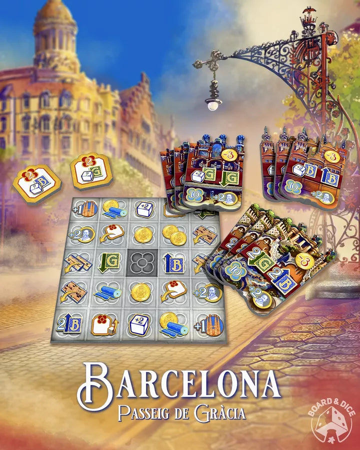 | Mecânicas | Different Dice Movement, End Game Bonuses, Tile Placement, Worker Placement |
