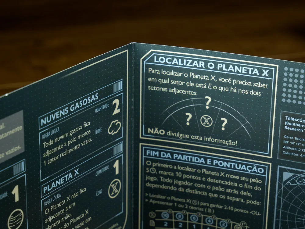 No jogo Em Busca do Planeta X, os jogadores assumem o papel de astrónomos que usam observações e deduções lógicas para procurar esse planeta hipotético. A cada jogo, o aplicativo complementar seleciona aleatoriamente um arranjo de objetos e um local para o Planeta X seguindo regras lógicas predefinidas.