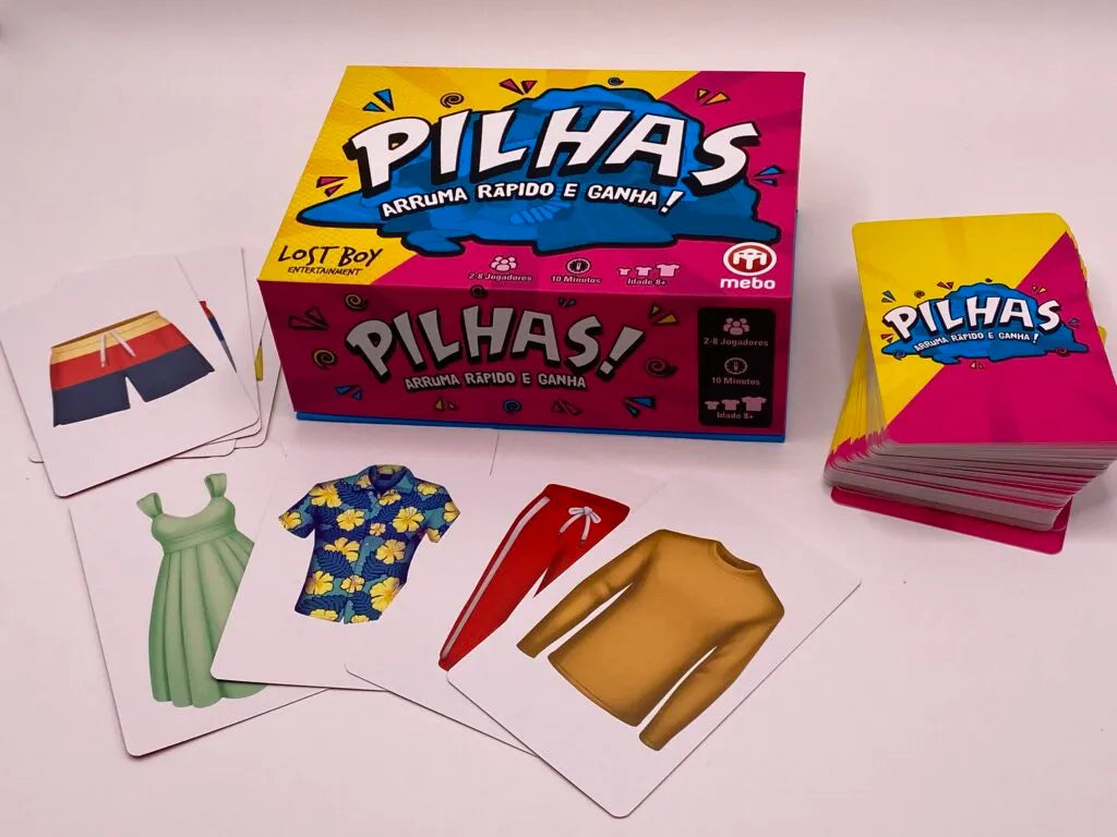 Em Pilhas!, podem jogar até 8 jogadores ou enfrentar-se num divertido duelo a dois. O objetivo é formar conjuntos de peças de roupa, trocando cartas através de uma pilha de descarte comum. Cada partida dura menos de 10 minutos, tornando o jogo altamente rejogável e viciante. Este jogo de cartas portátil é perfeito para qualquer ocasião.