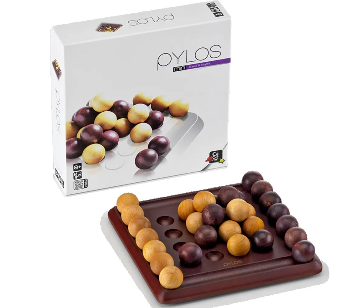 Pylos é um jogo abstracto em que o objectivo é construir a própria pirâmide. Cada jogador tem 15 esferas e o jogador que conseguir colocar uma esfera da sua cor no topo ganha. É tão simples quanto isto. Contudo, sempre que um jogador conseguir ter quatro das suas esferas juntas pode retirar do tabuleiro uma ou duas esferas o que lhe dará uma vantagem maior para vencer uma partida. Percebe-se que, para além da construção, é importante conseguir juntar 4 esferas, situação que torna o jogo cheio de artimanhas. Aqui na versão mais portátil Mini.
