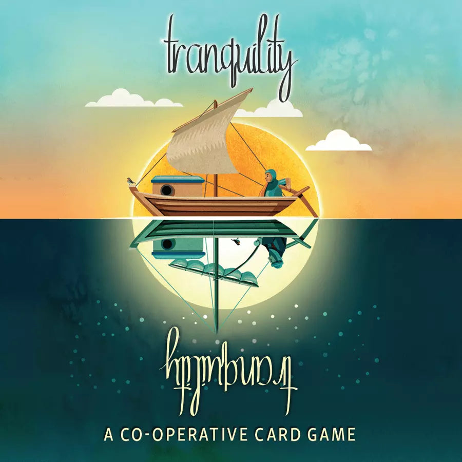 Tranquility é um jogo de cartas cooperativo no qual os jogadores devem encher o mar de ilhas – especificamente cartas de ilhas numeradas – e guiar o navio para casa antes que qualquer jogador fique sem cartas. Mas sem falarem porque no mundo de Tranquility a única maneira de jogar é em silêncio.