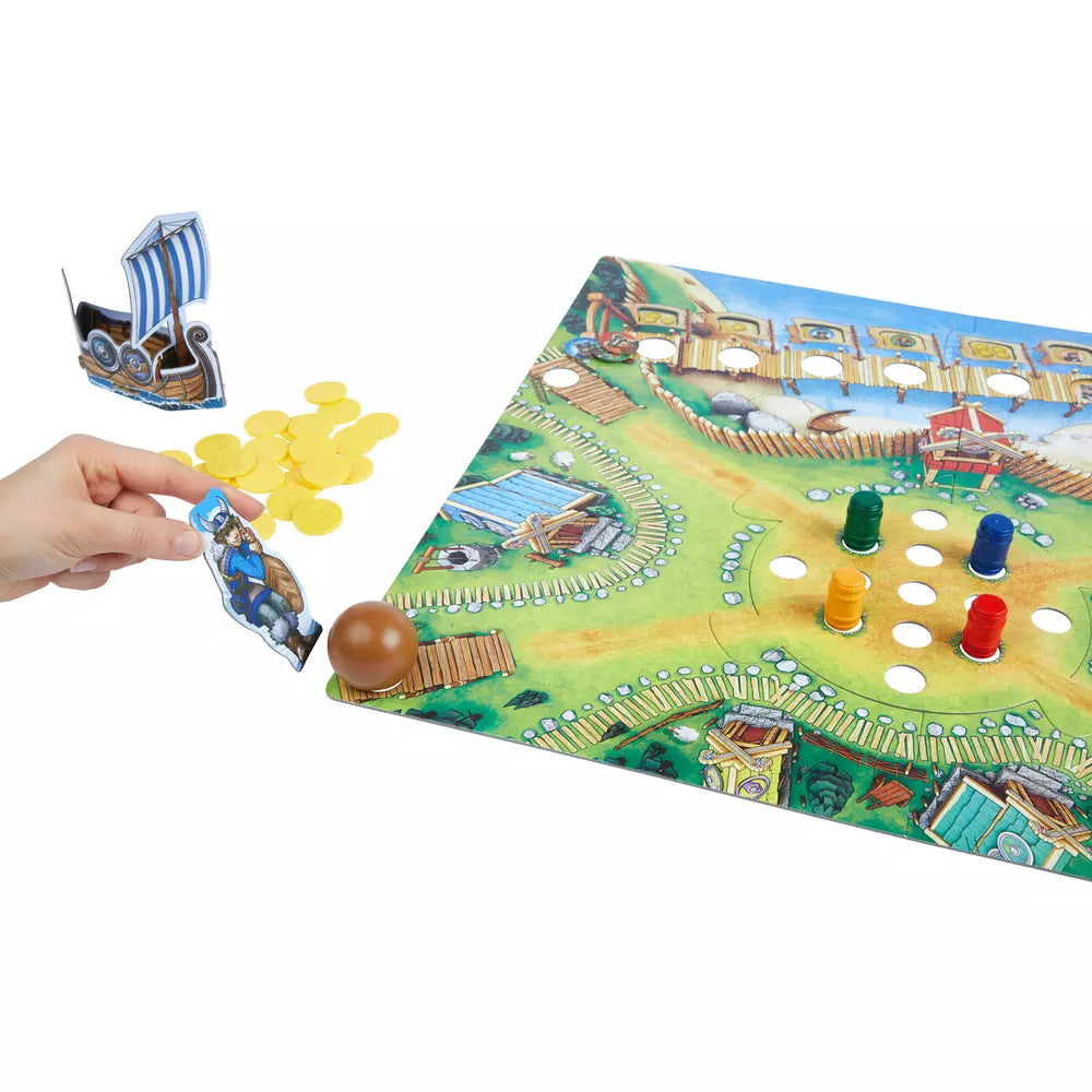 Em Valley of the Vikings, o concurso anual de bowling está a decorrer. É necessário coragem, habilidade e risco para que os jogadores usem a bola para derrubar os barris certos e posicionar habilmente seus Vikings no cais. Mas o jogador que se aventurar longe demais e é o primeiro a cair na água e volta para o início do cais de mãos vazias. O jogador que capturar mais moedas de ouro vence! Com um tabuleiro envolvente, quatro navios Viking 3D e 24 moedas de ouro, este jogo traz emoção até o fim!