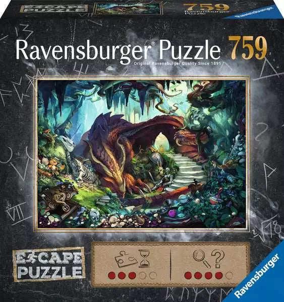 Os Escape Rooms são uma tendência um pouco por todo o mundo. A ideia é que vários jogadores se deixam trancar numa sala para cumprirem uma missão. Para fazerem isso, eles devem resolver os quebra-cabeças escondidos na sala. Este princípio é a base de uma variante completamente nova de puzzles: o ESCAPE PUZZLE. Depois de montadas todas as 759, a imaginação, intuição e dedução entram em ação!Assim como os jogadores ao vivo nas suas escape rooms, os escape puzzles também mergulham numa história emocionante que os leva para mundos misteriosos. Mas só serás o herói da história se – peça por peça – também conseguires resolver o último grande quebra-cabeças e escapar.