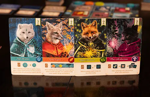 Em Nocturne, jogas como uma mística raposa a lançar feitiços mágicos para colecionar uma variedade de itens encantados. Competes contra outros místicos rivais, e todos decidem quando lançar os feitiços mais poderosos para se mover pela floresta de forma mais astuta e garantir a melhor coleção. A cada turno, decides quais os itens mais valiosos para ti e quando atrasar os outros místicos.