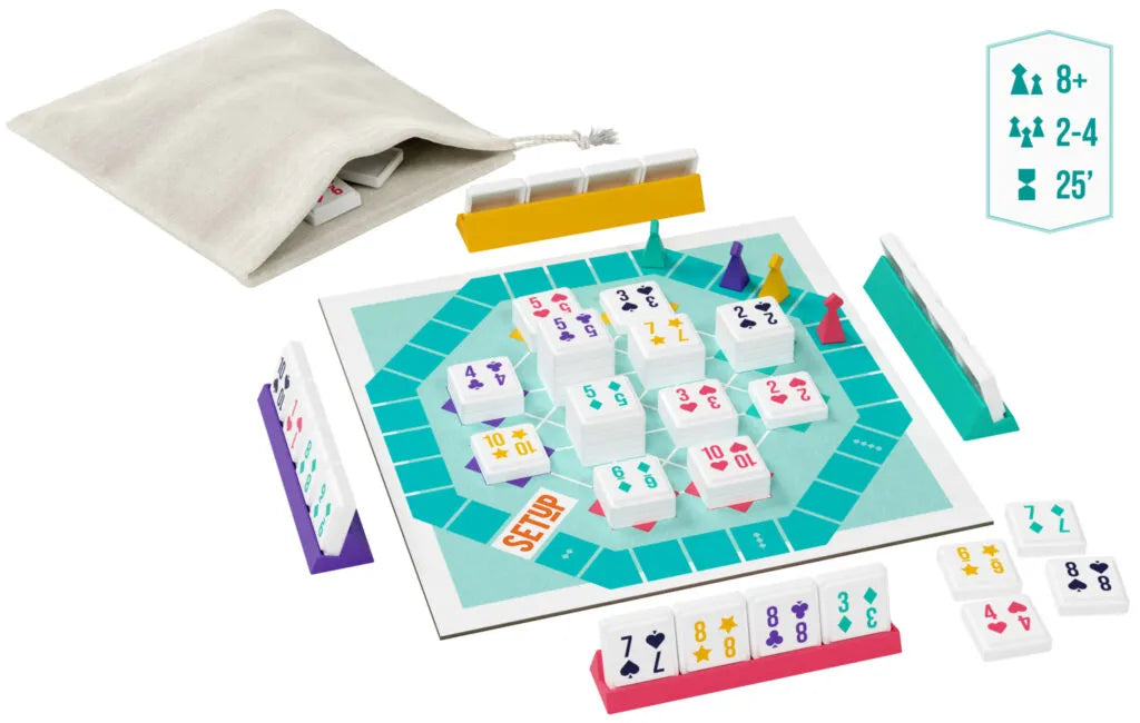 Um jogo de tabuleiro clássico no estilo rummy, perfeito para os amantes de peças e táticas!