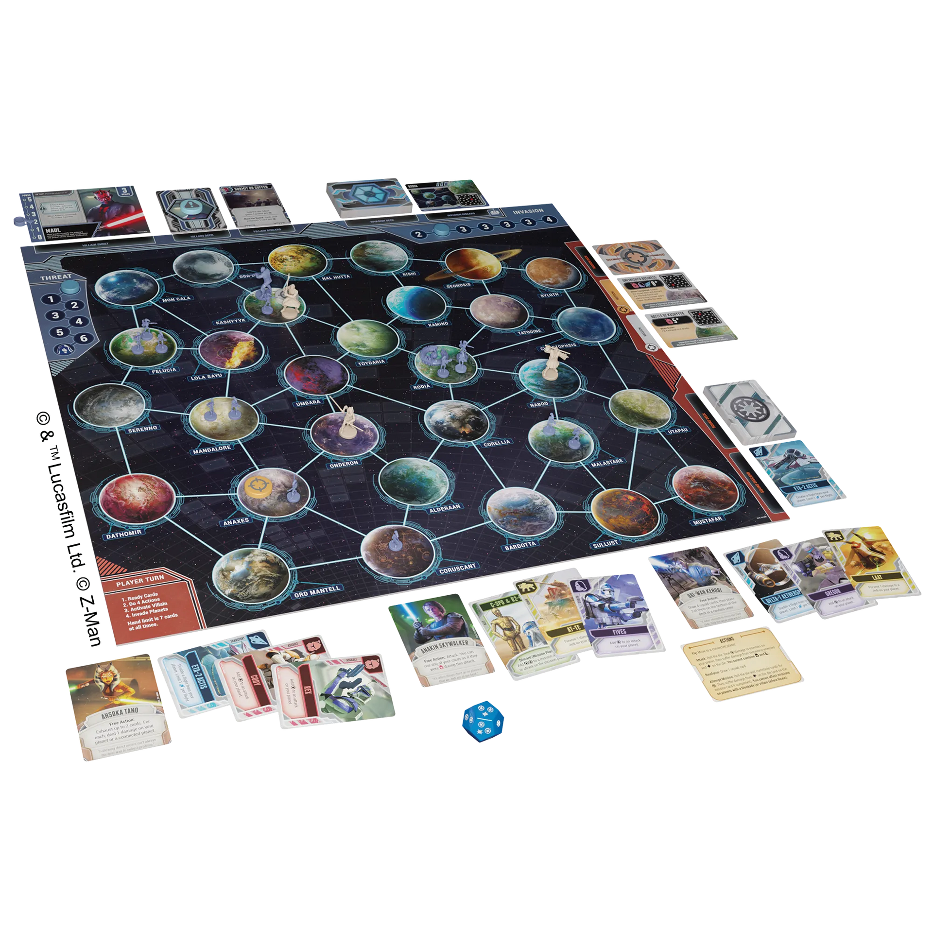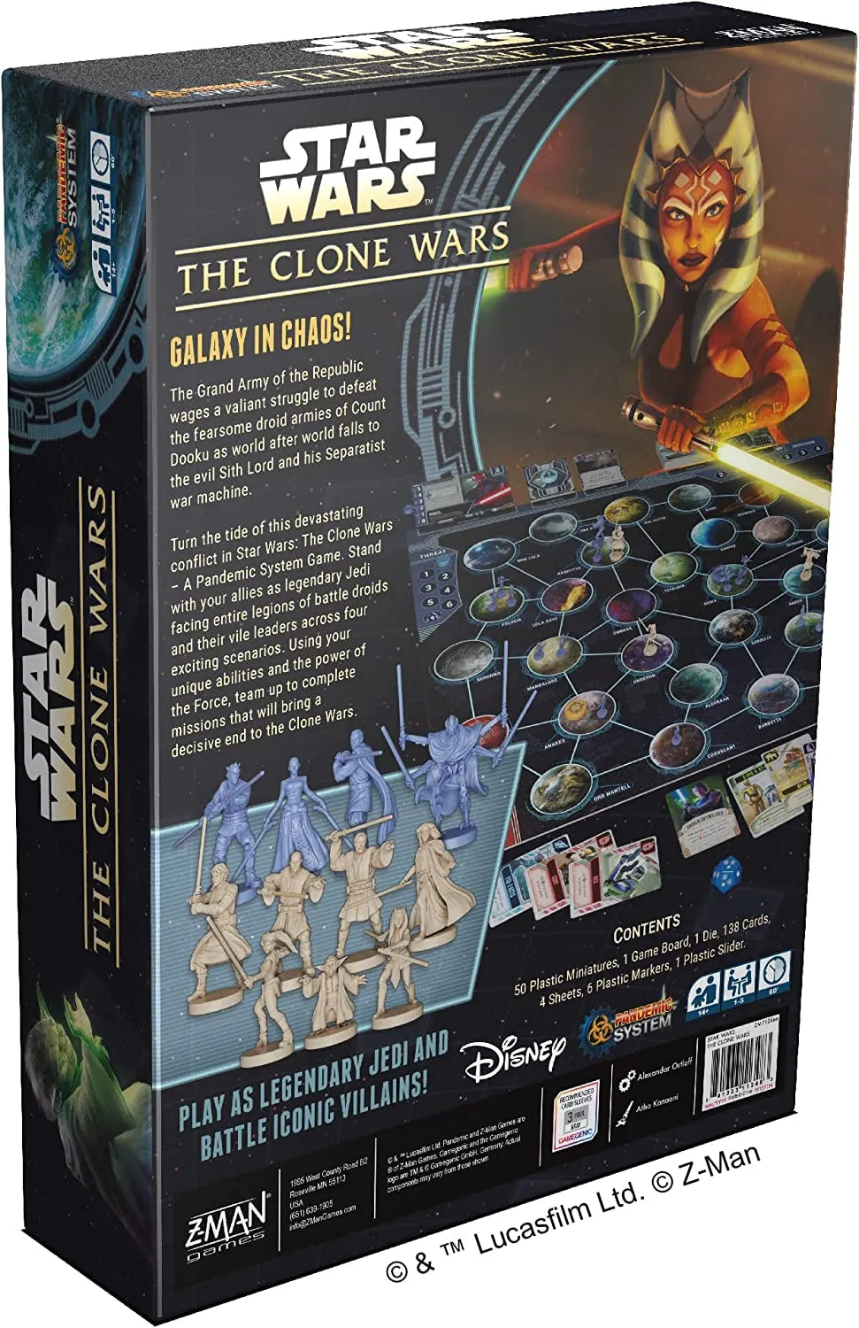 Em Star Wars: The Clone Wars atravessas uma galáxia onde heróis Jedi icónicos utilizam os mecanismos de jogabilidade familiares da série Pandemic.