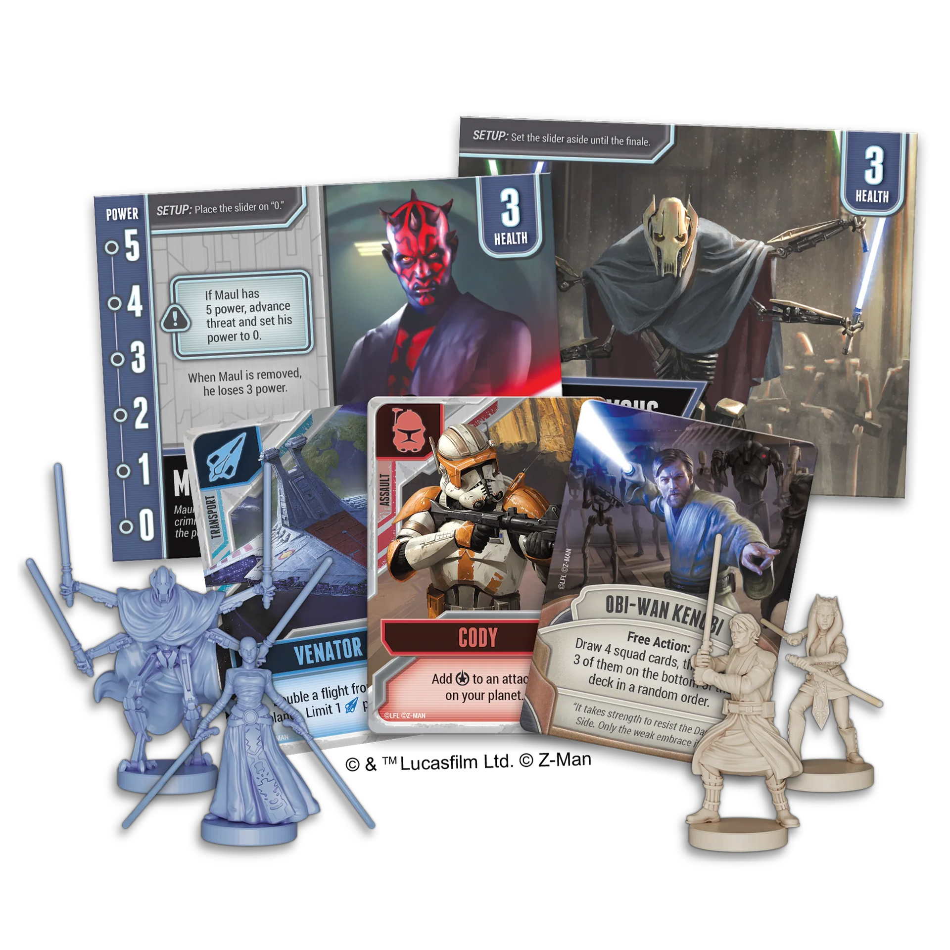 Os jogadores devem trabalhar em conjunto para enfrentar o ataque de droides, movendo-se para os seus espaços e envolvendo-os em combate, utilizando dados e cartas de esquadrão para causar danos e repelir a ameaça. Entre as batalhas, os jogadores deslocam-se de planeta em planeta, combatendo mais droides, quebrando bloqueios, completando missões para inverter o curso da guerra e enfrentando vilões icónicos.