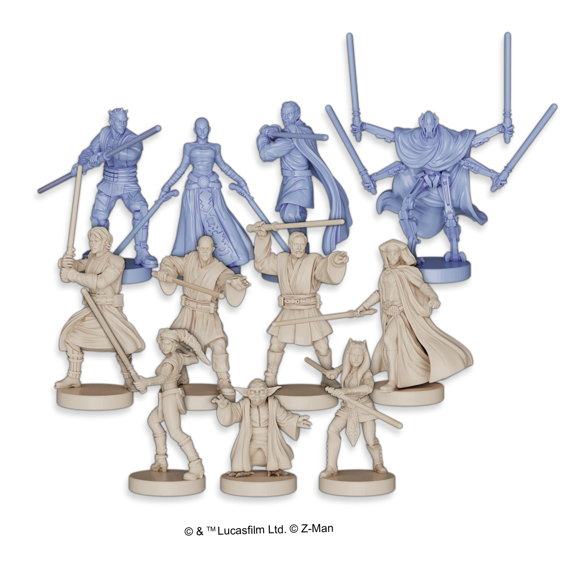 Os planetas sob cerco povoam o tabuleiro do jogo enquanto os jogadores assumem o papel de lendários Jedi que viajam de batalha em batalha, unindo-se e lutando contra a ameaça separatista. Os droides de combate atacam à vista, e um planeta invadido por demasiados cairá sob um bloqueio, impedindo os Jedi de o libertar do inimigo ou de completar missões.